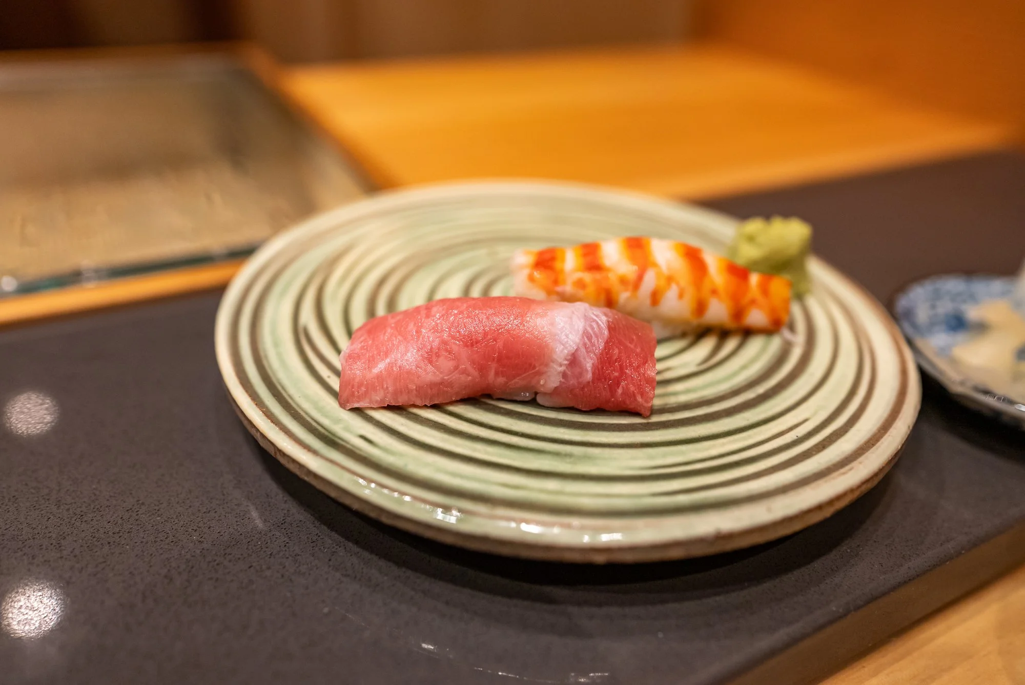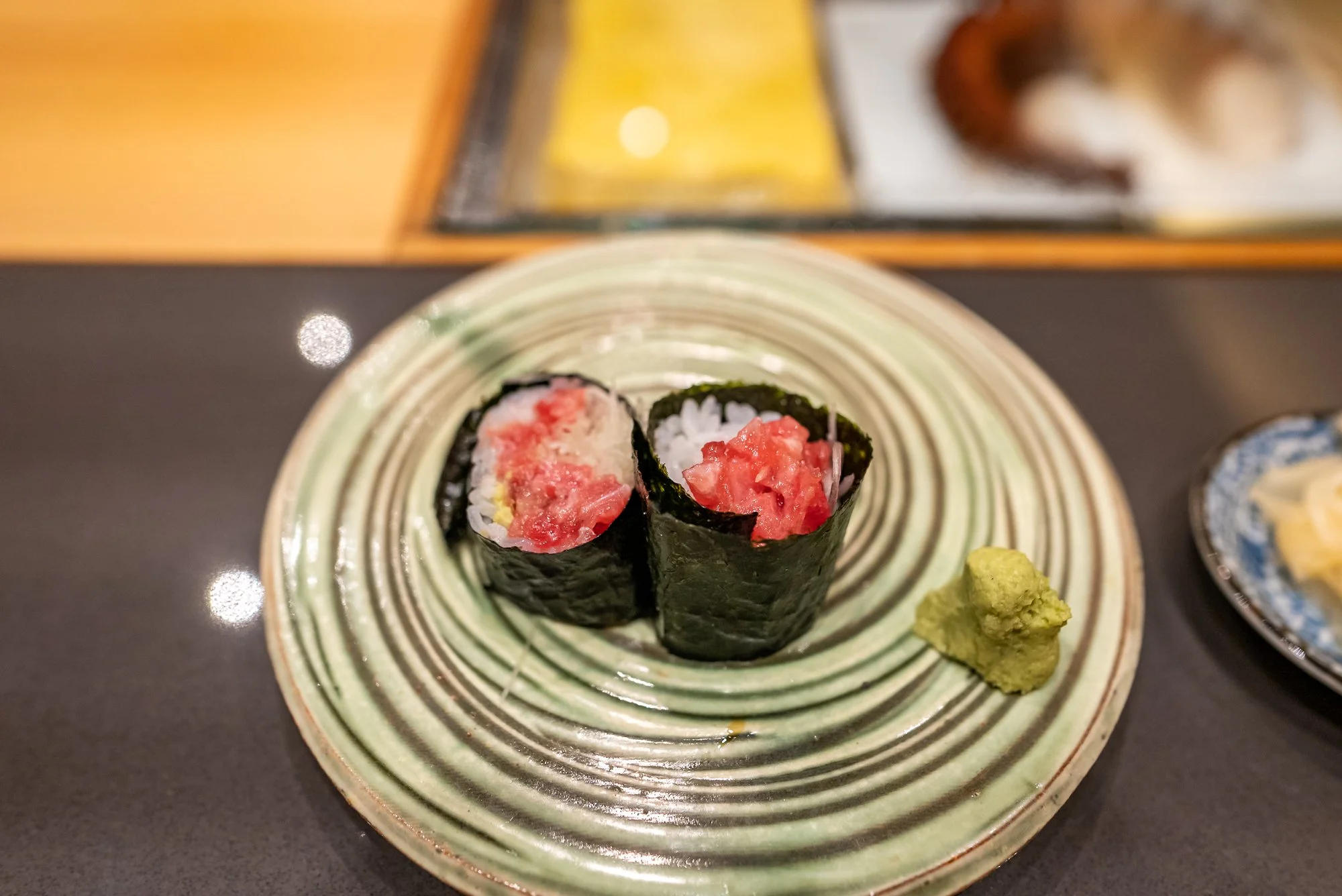 Maru has much more of that “Japanese” Michelin-starred sushi feel. The interior decor and setup is reminiscent of my meals at Sushi Harasho (Osaka) and Matsumoto (Kyoto). The warm, inviting wood interior and small bar seating makes you feel like you’re sitting in Japan. And this should be no surprise since the chef and owner, Chef Takeshi Kawasaki, has his original Maru Sushi located in Hokkaido. A location which does hold a 1-Michelin star rating, although is not overseen by Chef Kawasaki’s son.